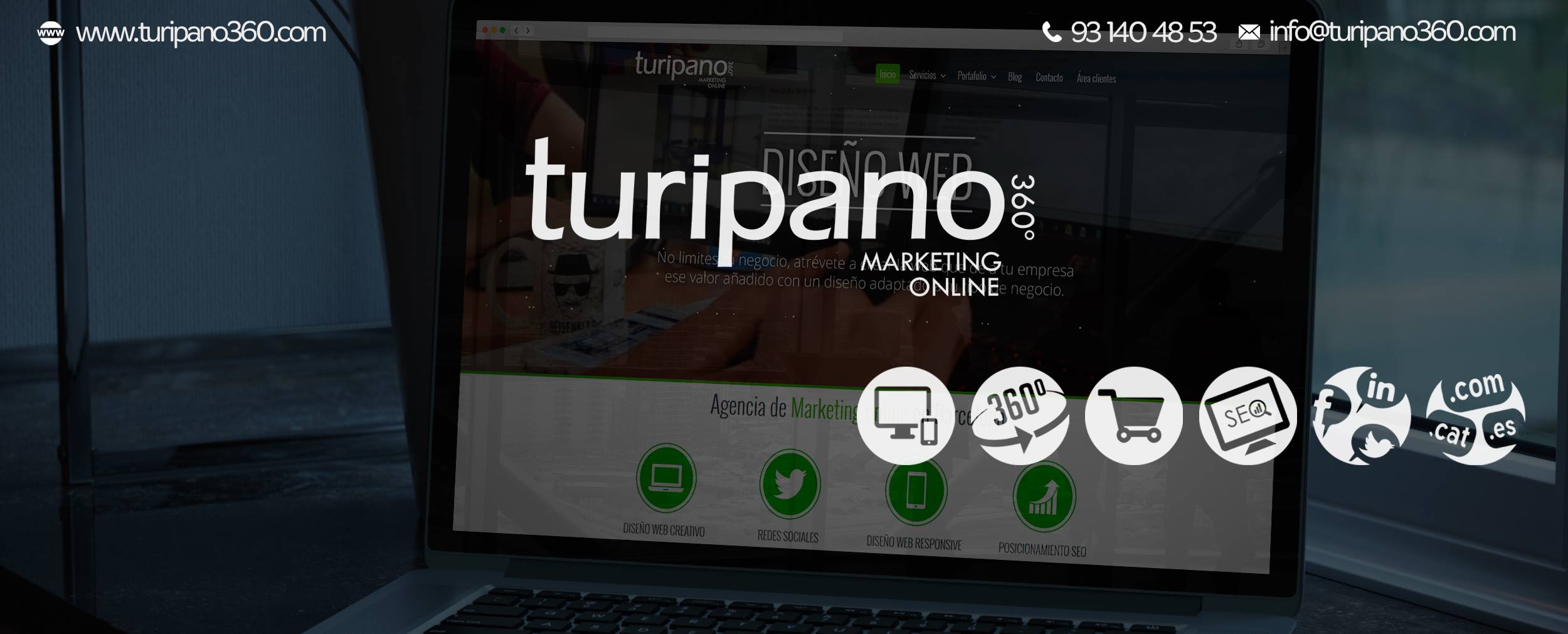 Turipano360 es una Agencia de Marketing Online de Barcelona que nace para dar solución a la presencia online de pequeñas y medianas empresas mediante la creación de páginas webs, tiendas online, posicionamiento SEO y Adwords, gestión de redes sociales, dominios/hostings, diseño gráfico y visitas virtuales de sus instalaciones.